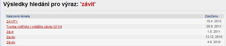 19.04. 2012 - 15:55 Opět jen upozorňuji. Než založíte nové téma, ověřte si, jestli už se to neřešilo. Téma Závity už se tu omílá minimálně počtvrté. Je to otázka pár vteřin napsat do vyhledávače "závit" a podívat se, jestli už podobné téma neexistuje.